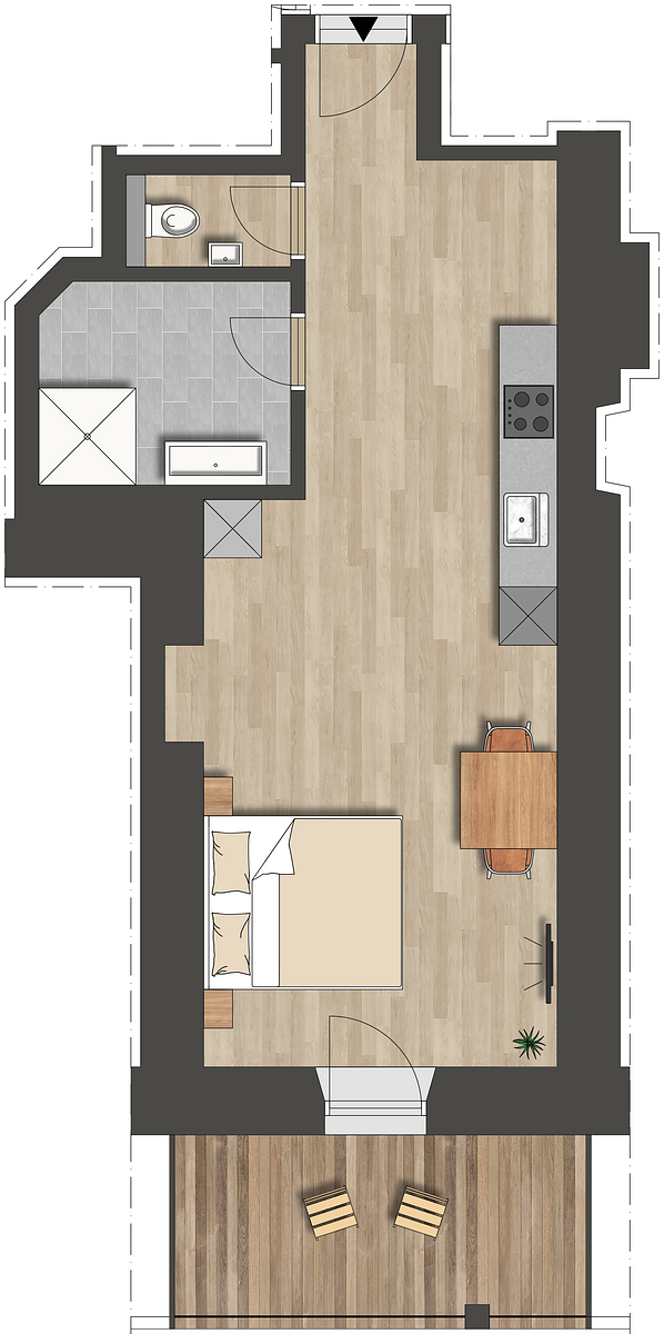 - Balcony with a view and garden furniture