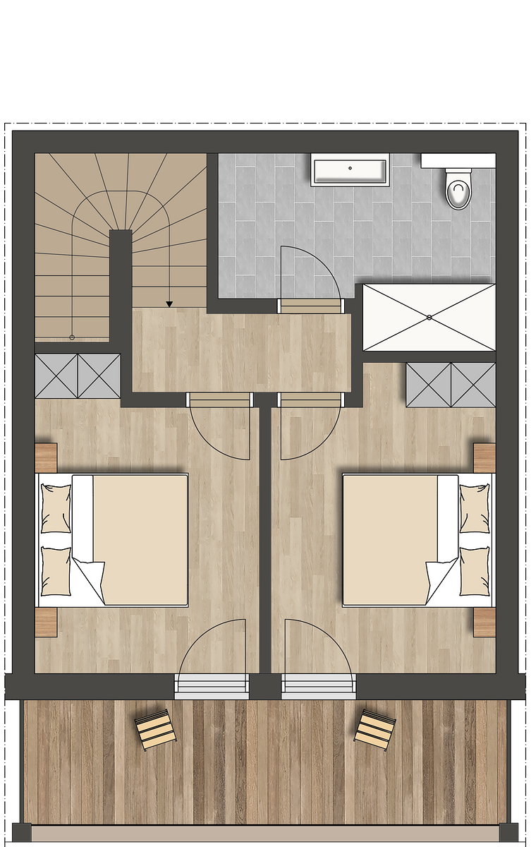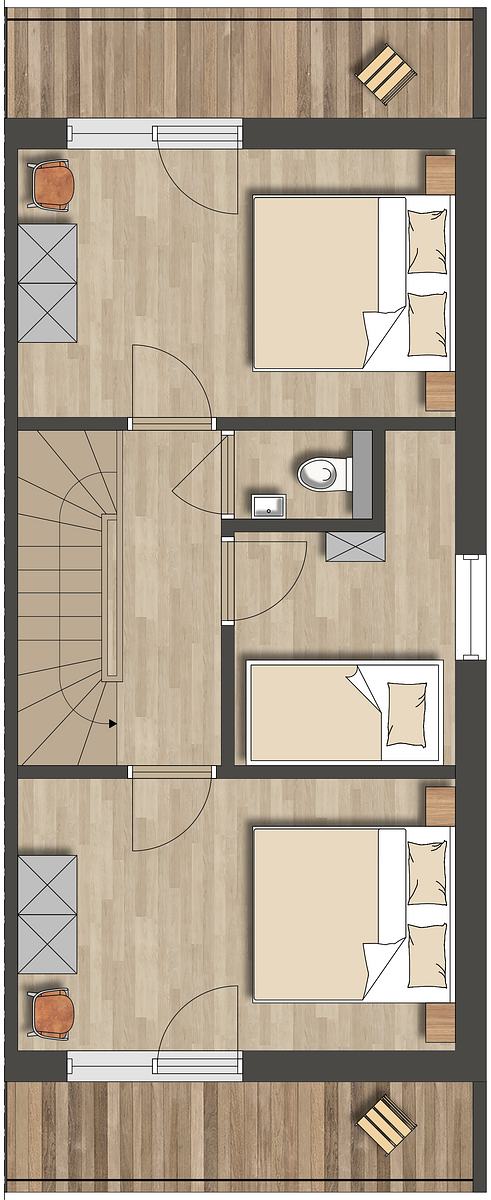 - Balcony at the front and rear